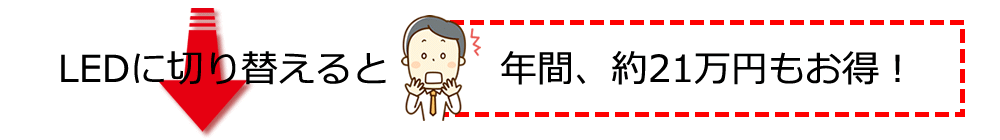 【試算条件】電気料金単価:25円/kW、年間365日点灯
